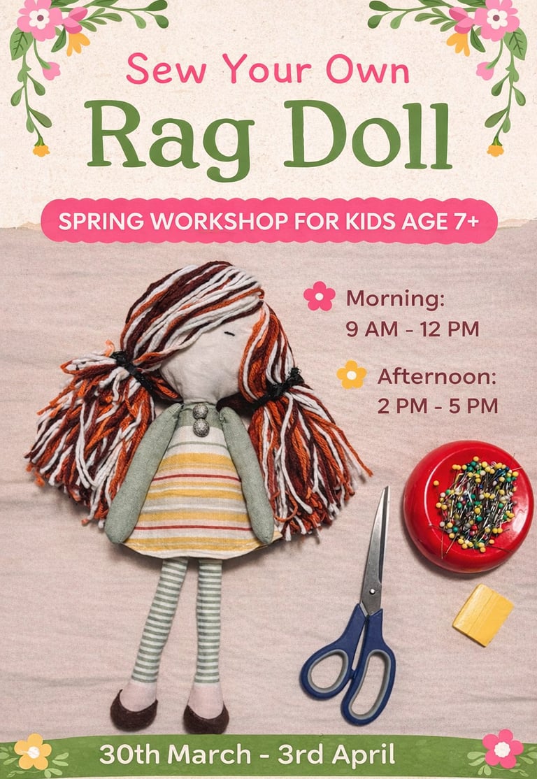 This workshop encourages creativity, patience, and confidence while building real sewing skills in a fun and supportive environment.